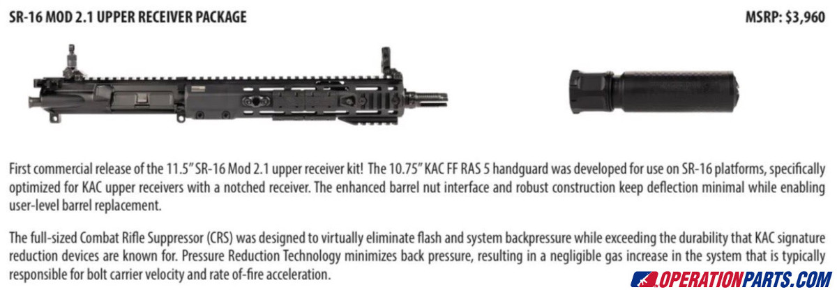 KAC-Knight’s Armament SR-16 Mod 2.1 Upper Receiver/Suppressor Package (SHOT1)